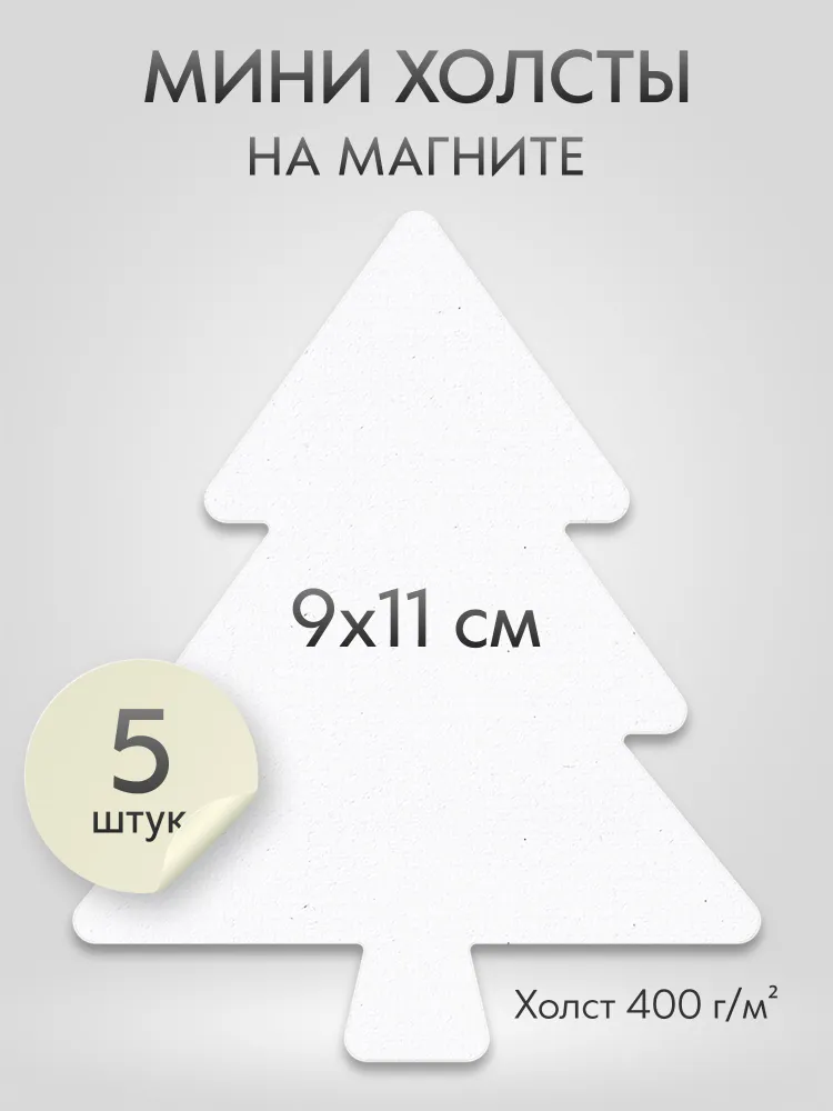 Холст на магните для росписи и рисования, размер: 9х11 см, ёлка, набор 5 штук
